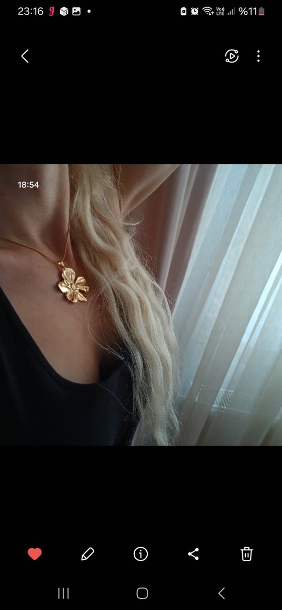 Altın Renkli Çiçekli Midi Kolye celik