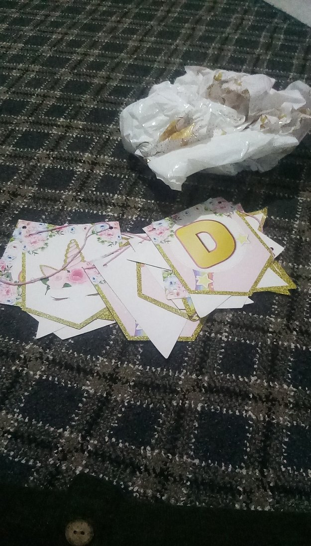 Altın renkli harfler ve çiçek desenleriyle süslenmiş, hafif arka planlı parti afişi.