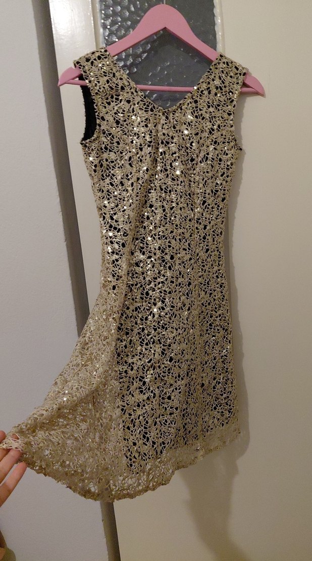 kusur yok 1 kere nişanda giyildi ankara çankaya da bir butikten alındı. iç göstermiyor. V yaka, kolsuz ve ince kesimli bu midi elbise, altın renkli dantel işlemeli parlak tasarımıyla parti için uygundur. ✨ #abiye #nişan #kına #gece #düğün #şık