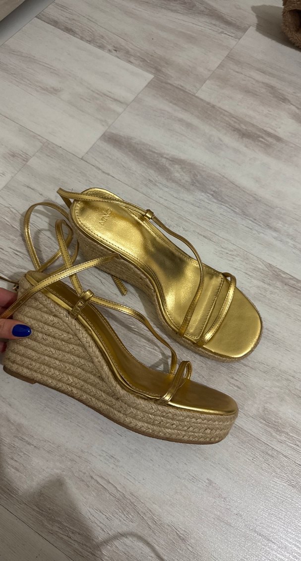 Altın Renkli Dolgu Topuklu Hasır Espadril
