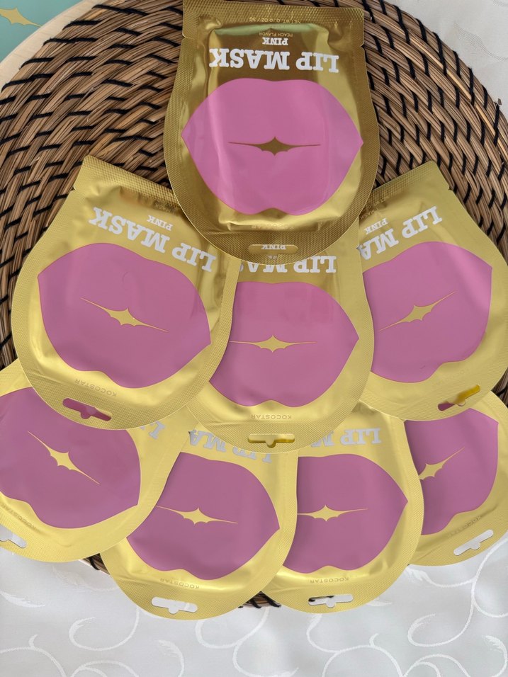 Nemlendirici ve yumuşatıcı özellikte altın renkli dudak maskesi. Her pakette ön yüzde pembe dudak resmi bulunur.