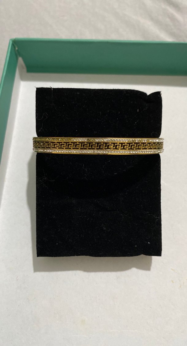 Altın renkli, elastik bantlı ve nakışlı desenli kadın bileklik, minimalist ve klasik şıklığı günlük kullanıma sunar. ✨