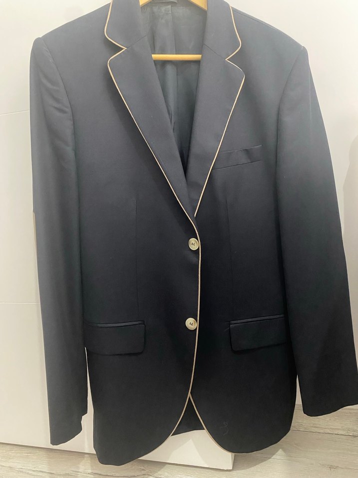 Altın renkli, modern klasik tarzda erkek ceket. Notch yaka, düğmeli, uzun kollu ve klasik kesimdir. İş ve ofis için uygundur. ✨size50 drop 6
