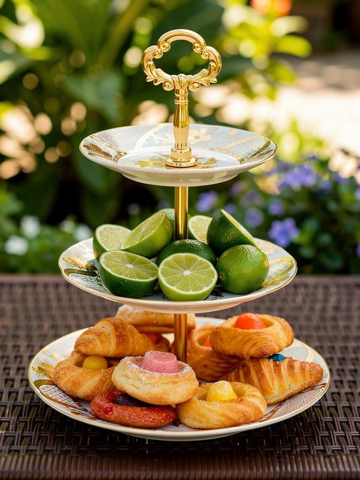 Altın Renkli Etnik Desenli 3 Katlı Servis Tabağı