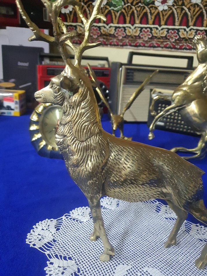 Detaylı dokulu koyu altın renkli geyik biblosu, dantel üzerinde duruyor.