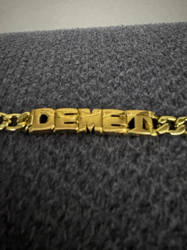 Altın renkli, oynak yazılı bileklik