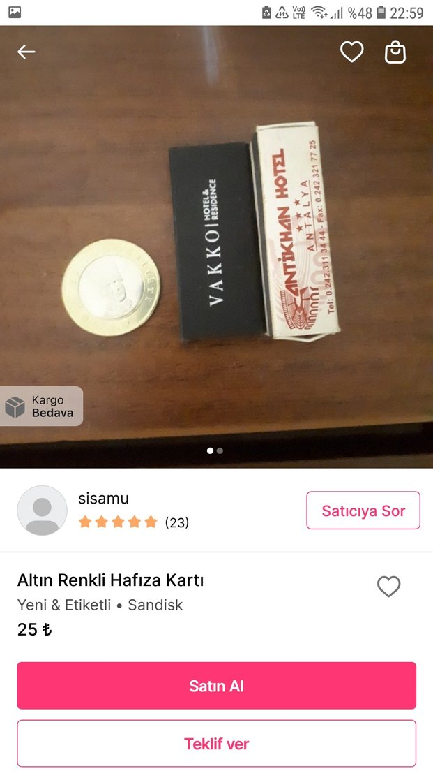 Yeni ve etiketli, altın renkli Sandisk hafıza kartı. Kargo bedava.