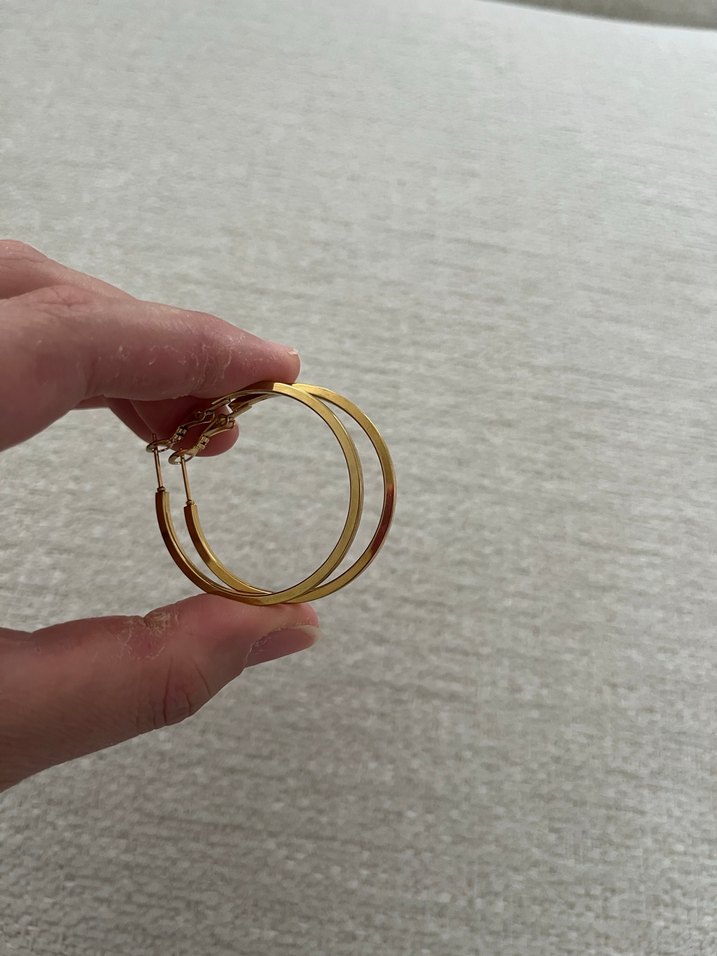 Parlak görünüme sahip,altın renkli halka küpe. Minimalist ve normcore tarzda, günlük kullanıma uygun.