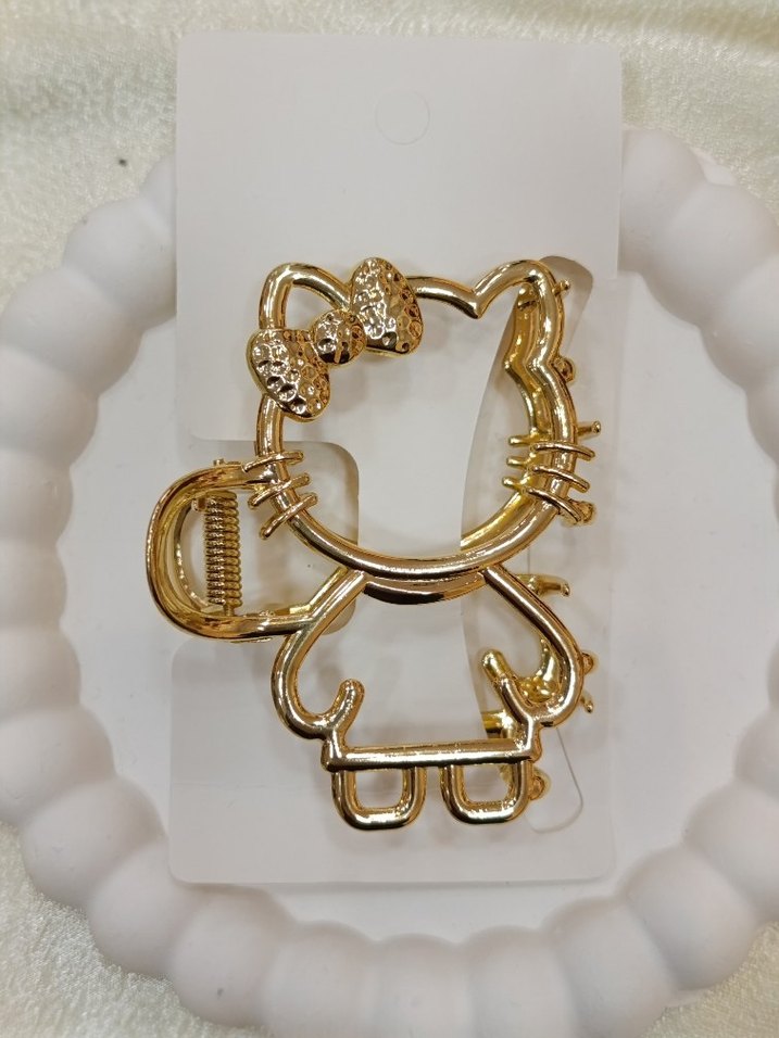 Altın renkli, tokalı ve plastikten yapılmış kedi şeklinde kadın saç aksesuarı. Renkli ve Paris tarzı counterculture stili yansıtıyor.