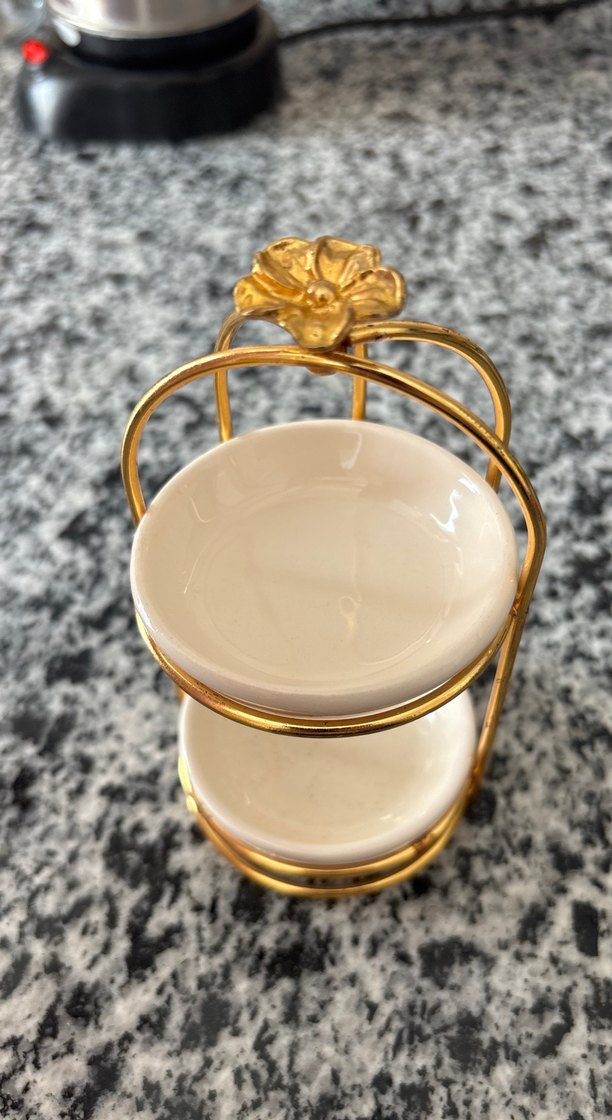 Altın Renkli İki Katlı Seramik Sunumluk