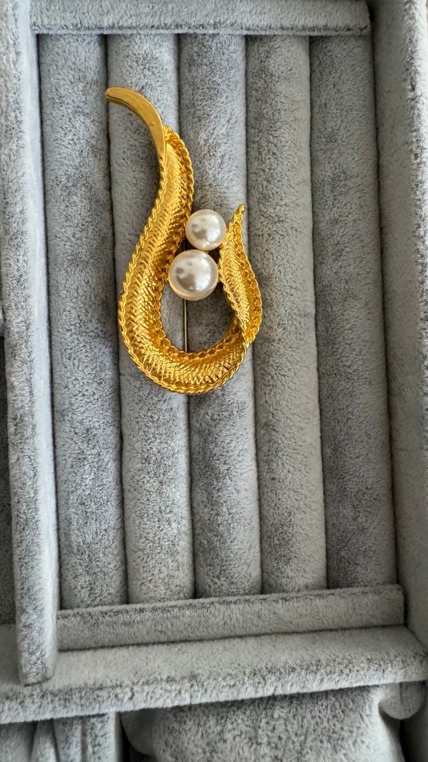 Altın Renkli İnci Detaylı Vintage Broş