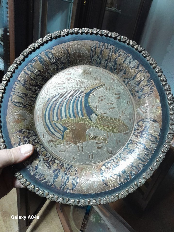 Altın Renkli İşlemeli Bohem Tabak..bakır kalem işi..