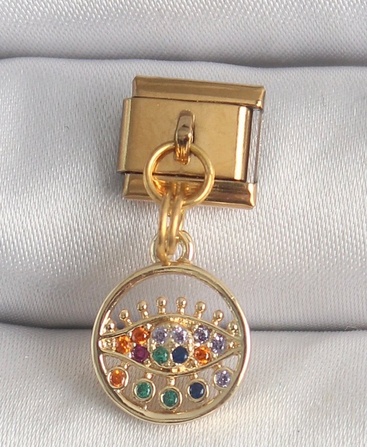 Altın renkli, işlemeli ve renkli boncuklarla süslenmiş bohem tarzda charm. Günlük kullanıma uygun. ✨