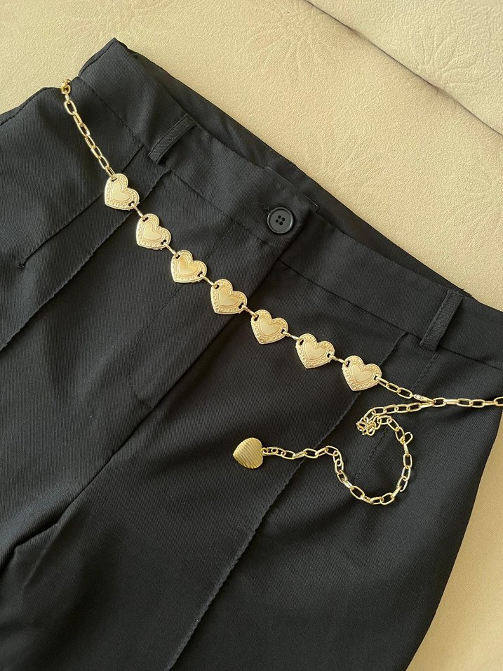 İşlemeli kalp desenleri ve detaylı zincir bağlantılarına sahip altın renkli vücut zinciri, günlük sokak modası için uygundur. ✨