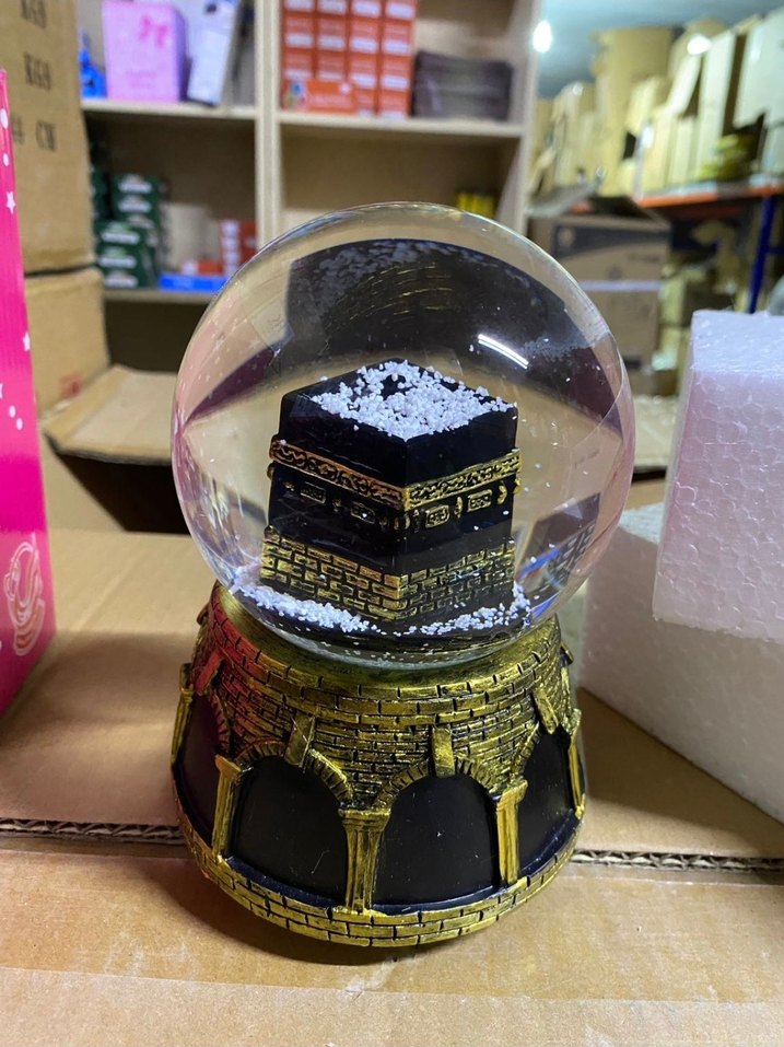 Altın renkli taş görünümlü tabanı ve içindeki Kabe figürlü cam küresi ile kar küresi figürüdür. ❄️