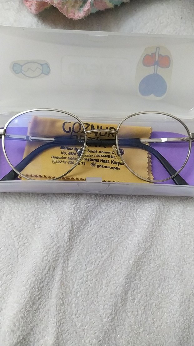 Altın renkli klasik yuvarlak çerçeveli kadın gözlüğü, fermuarlı gri kılıf ile birlikte. Kılıf içinde temizlik bezi bulunur. ️