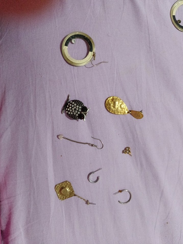 Altın renkli, payetli ve kabartmalı dokulara sahip çeşitli kadın küpeleri seti. Modaya uygun görünüm için ideal.✨hepsi tekli dir