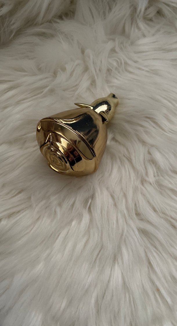 Altın renkli, şık ve çiçek tomurcuğu şeklinde tasarlanmış kadın parfüm şişesi.