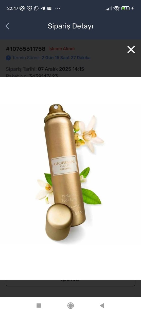 Altın renkli şişede, çiçeksi kokulu kadın deodorant spreyi. Gün boyu ferah ve hoş koku sağlar.