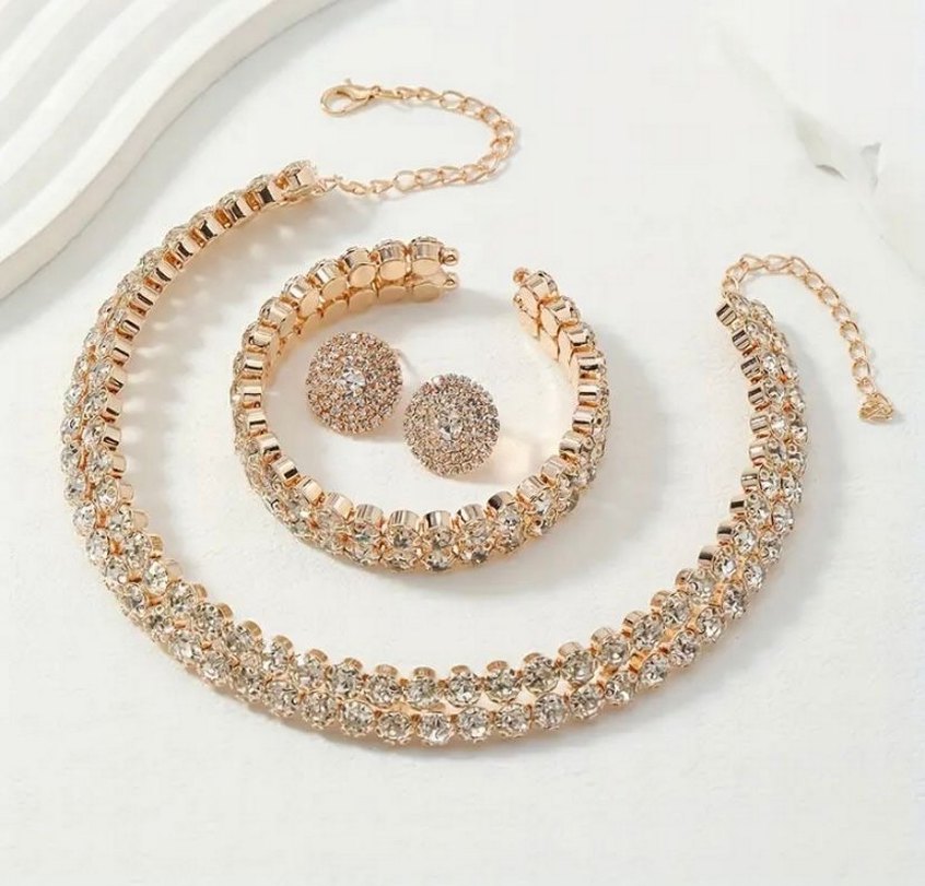 Altın renkli, payet detaylı ve yılan desenli kadın takı seti. Düğün ve özel günler için uygundur. ✨