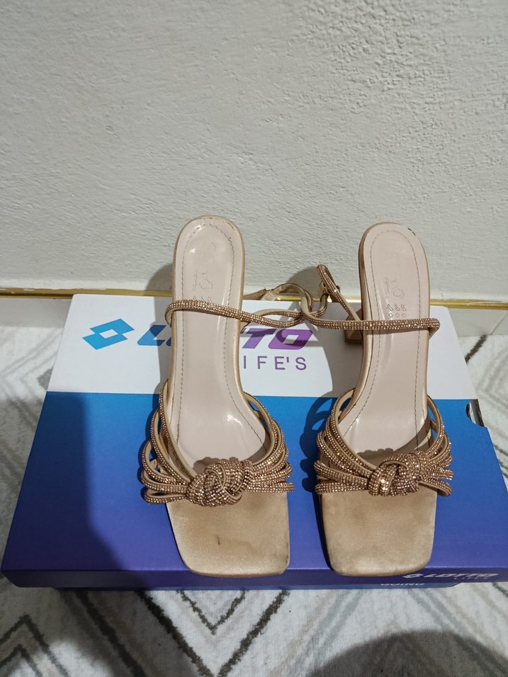 Altın Renkli Kadın Topuklu Akşam Ayakkabısı