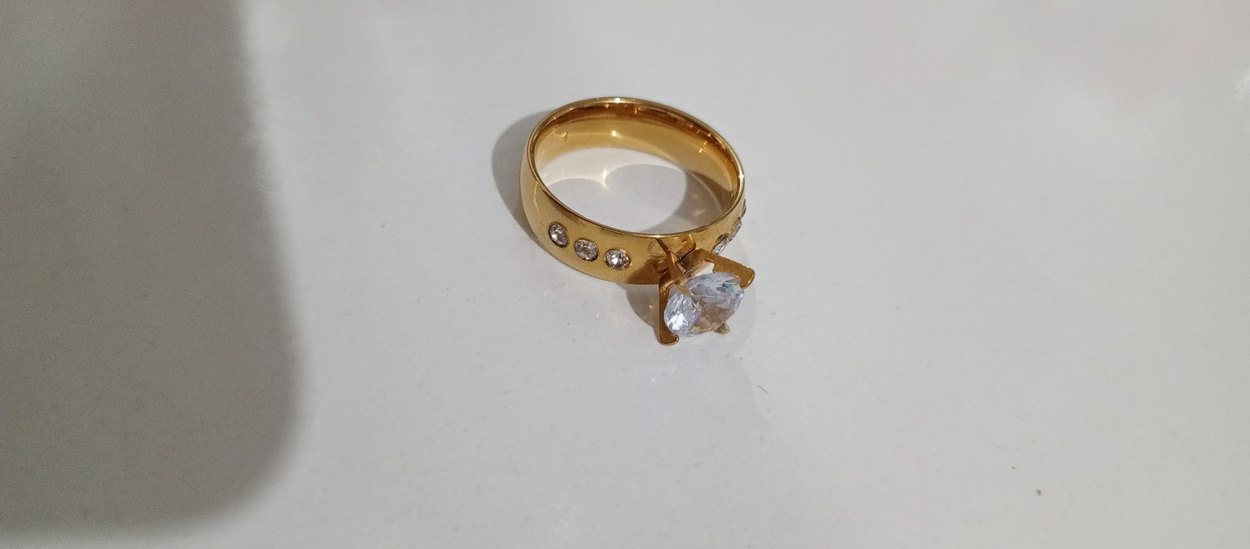 Altın renkli kadın yüzük, çelik solmaz kararma yapmaz günlük kullanima uygun dur numara ( 7 ) dir