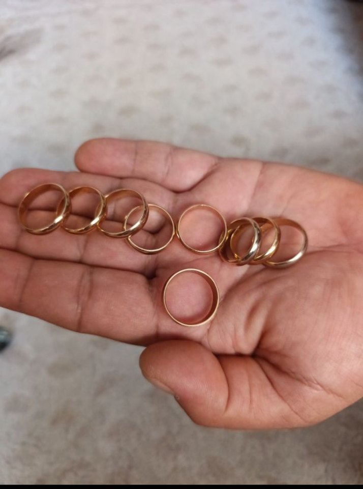 Parlak altın renkli, elastik tasarımlı kadın yüzük setidir. Minimalist ve sade tarz için uygundur. Düğün için ideal, desensiz ve temel modeldir.