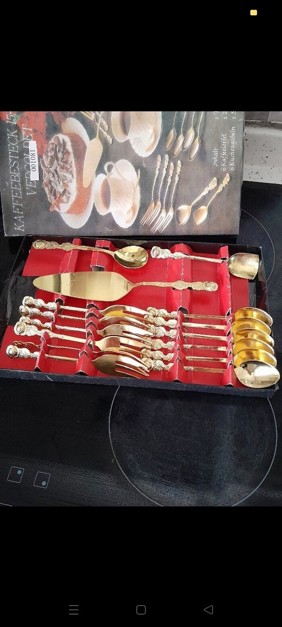 Altın renkli kahve takımı setinde kaşık, çatal ve pasta spatulası bulunur. Kutusunda servis için uygundur. ☕