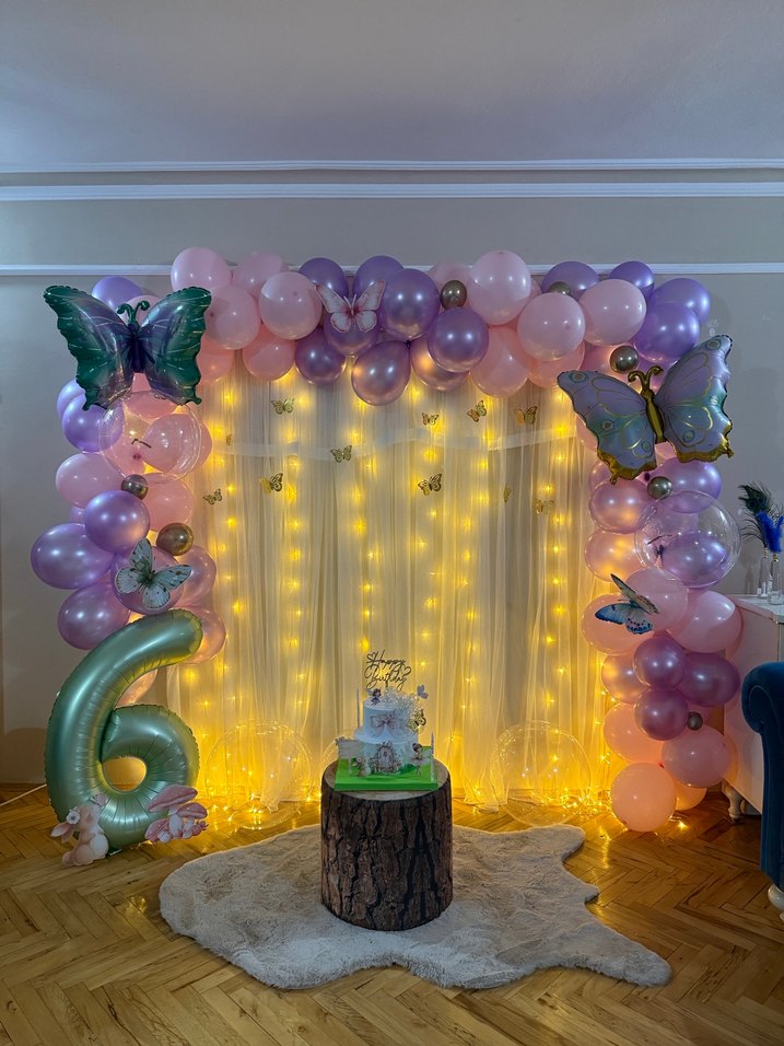 44 mor balon(35kullanıldı) 48 pembe balon(28 kullanıldı) 3 küçük gold balon 6 folyo balon 2 büyük kelebek folyo balon 20-25 adet cakepops süslemek için kağıt kelebek 3 adet maket kartonlu süs kelebek 1 adet tavşan 1 adet mantar görselli maket süs 30-35 adet süs kelebek(perde de ve taç yapımında kullandım ben) 4 layeks balon 2 tanesi hiç kullanılmadı Bu ürünleri alıp sadece bir tül be ped kullanarak aynı sonucu alabilirsiniz daha önceki yaptığım konseptleri de buradan satın yorumlardan bakabilirsiniz Balonlar makina ile şişirildi fiyata pasta dahil değildir ayrı ilan açıyorum isteyene pastayı ayrı olarak satıyorum sadece malzeme ve kargo parasına
