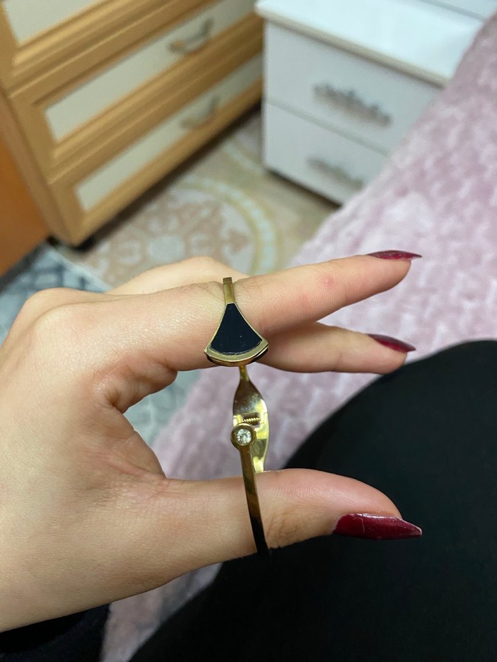 Altın renkli, kemerli ve yılan desenli koyu tonlarda günlük kullanıma uygun avangart tarzda bileklik. ÇELİK ÜRÜNDÜR