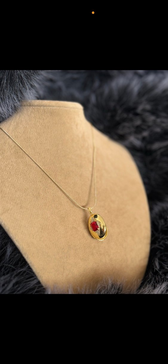 Altın Renkli Kırmızı Taşlı Mini Kolye fotoğraf koymalı