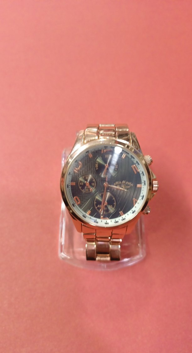 Altın renkli metal kayış ve çoklu alt kadranlara sahip siyah klasik kadranlı erkek kol saati. Streetwear tarzıyla uyumlu. ⌚