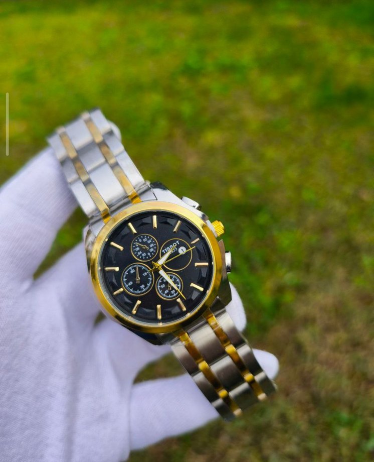Bu erkek kol saati, altın renkli paslanmaz çelik kayış ve çoklu alt kadranlara sahip siyah kadranıyla klasik ve çağdaş tarzı birleştirir. ⌚