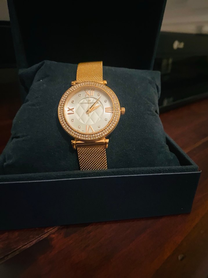 Bu kadın saati, parlak altın renkli bel kemerli örgü kayış ve modern klasik tasarıma sahiptir. Roma rakamlı yuvarlak kadranı ve dokulu yüzeyiyle zamansız şıklık sunar. ⌚sıfır garantili üründür