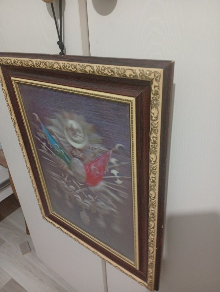 Altın detaylara sahip koyu tonlarda çerçeveli tablo, sanat eserinin detaylarını ön plana çıkarır. osmanlı tablosu