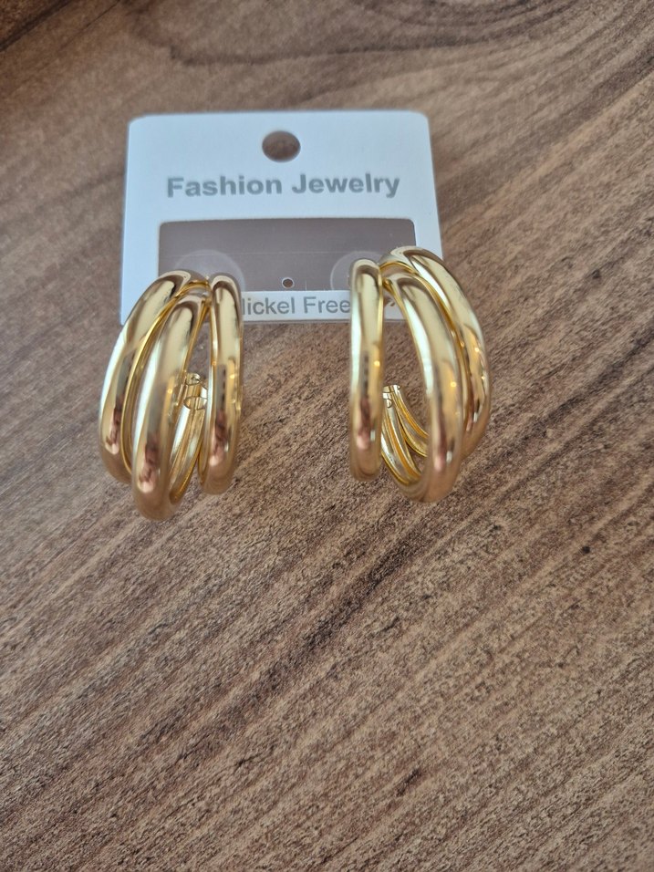 Parlak altın renkli, elastik tasarımlı halka küpeler. Günlük kullanım için uygun, nikel içermez. Minimalist sokak stili için ideal. ✨