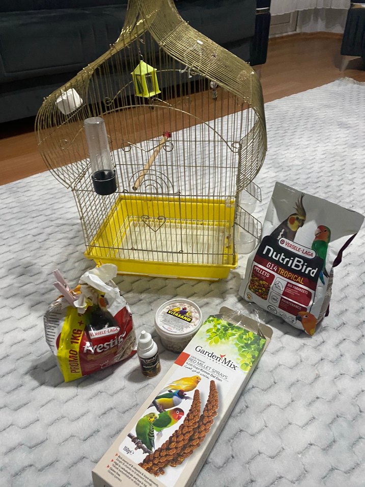 Altın Renkli Kuş Kafesi ve Kuş Yemleri