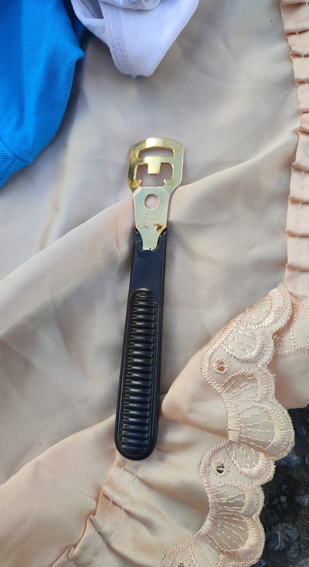 Koyu renk saplı ve altın renkli metal uca sahip manikür ve pedikür aleti. ✂️