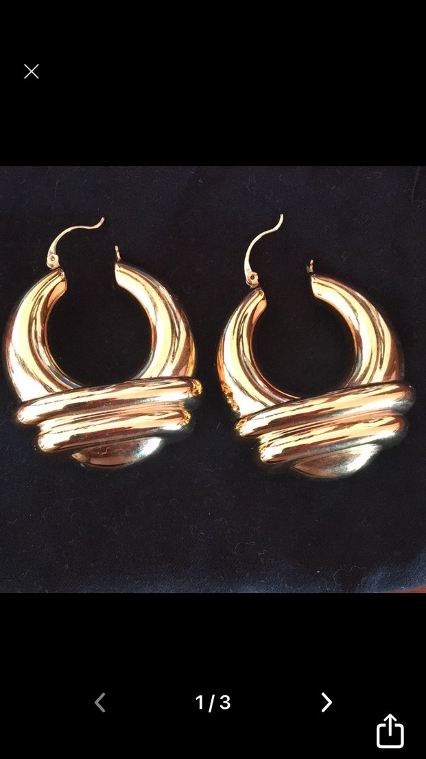 Altın renkli, midi boy, parlak ve pliseli tasarıma sahip küpeler. Romantik akşamlar için çağdaş tarzda.