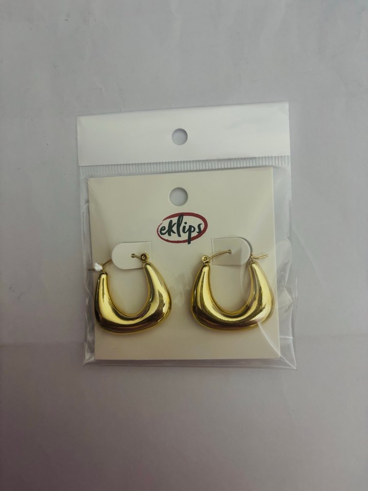 Parlak yüzeye sahip, altın renkli midi uzunlukta, fermuarlı tasarımlı küpeler. Marka: eklips. Günlük sokak stili için minimal bir tasarım. ✨