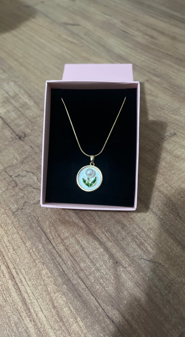 Altın renkli kısa kolye, pastel baskılı boncuklu kolye ucu ile bohem tarzı için uygun.