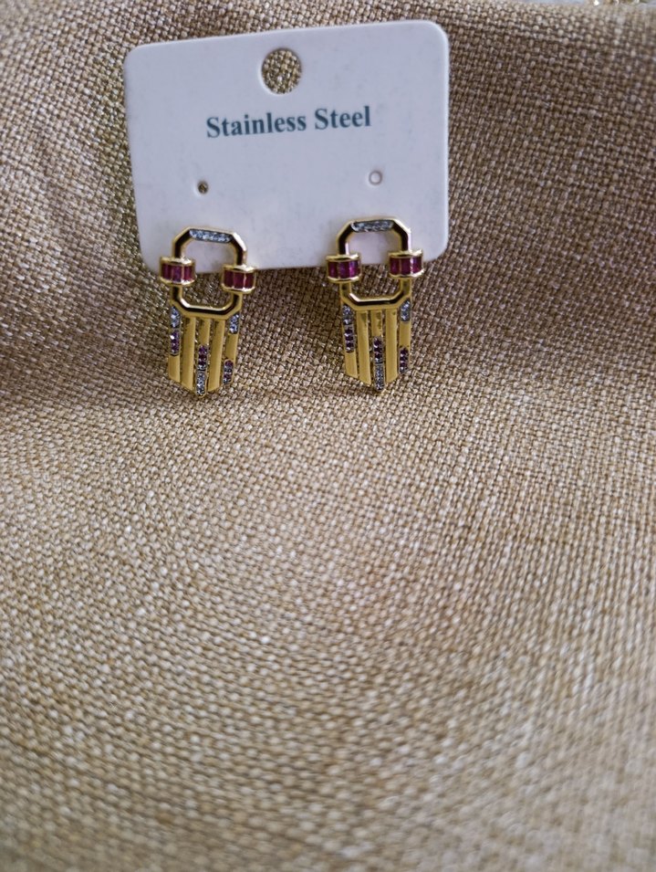 Kısa uzunlukta, parlak altın renkli boncuklu ve desenli tasarıma sahip, paslanmaz çelikten yapılmış küpeler. Cesur ve minimalist sokak stiline uygun, romantik akşamlar için ideal.