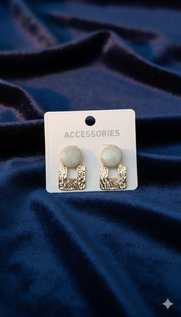 Altın renkli, boncuk detaylı ve dokulu kare tasarımlı mini küpe. Günlük kullanıma uygun, minimal ve çağdaş desenli bir model. ✨