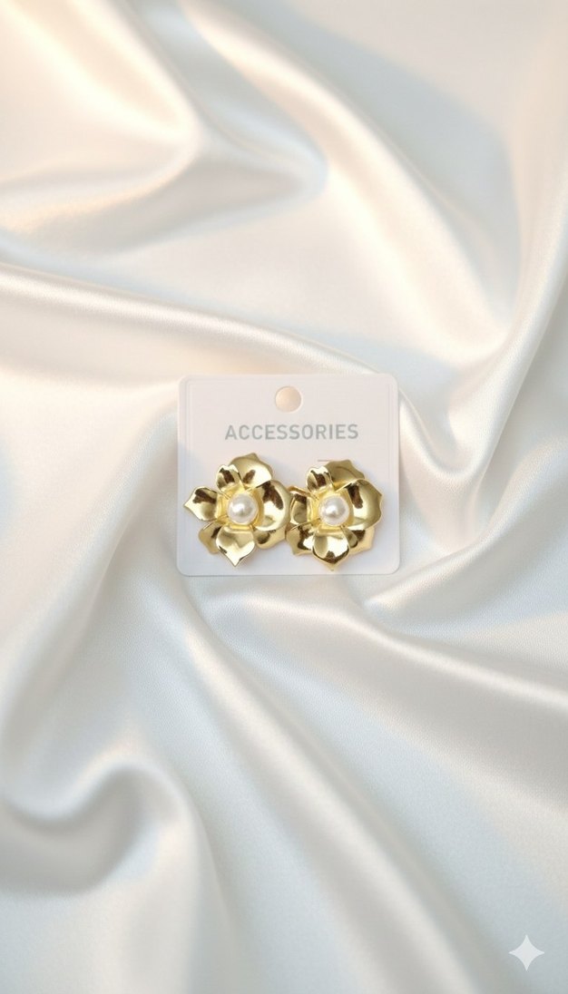 Altın renkli, mini boy çiçek desenli küpeler, payet detaylarıyla modern ve zarif bir görünüm sunar. ACCESSORIES.