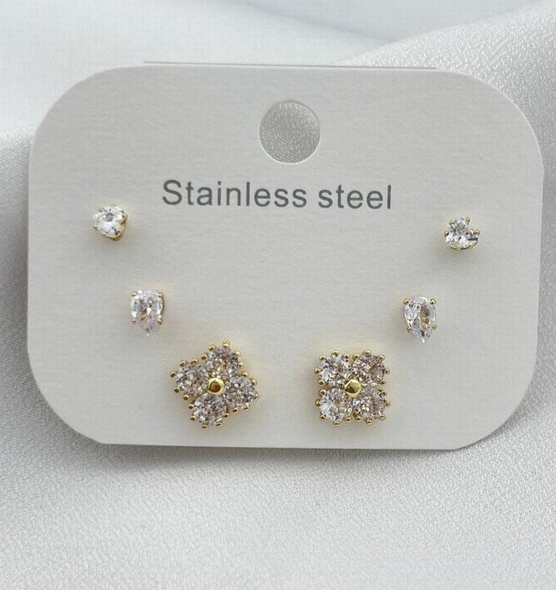 Xuping altın renkli, mini çiçek desenli ve payetli detaylara sahip paslanmaz çelik küpe seti. Düğün ve minimal tarzlar için uygundur. ✨