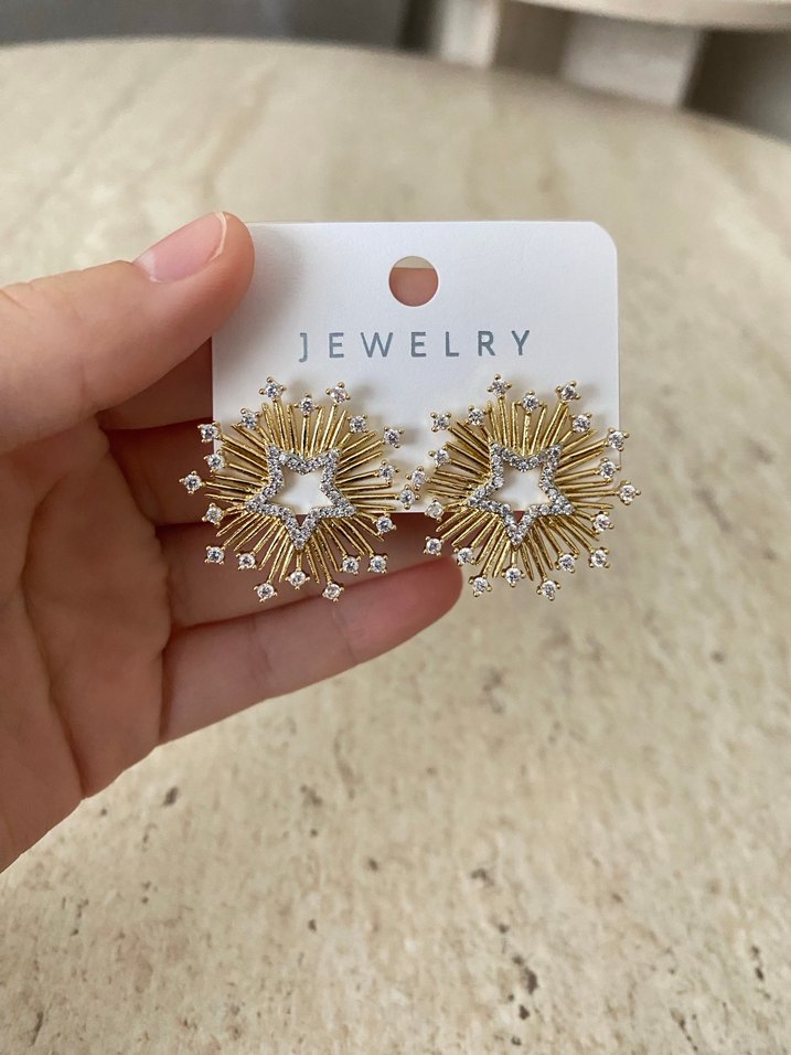Altın Renkli Mini İşlemeli Küpe