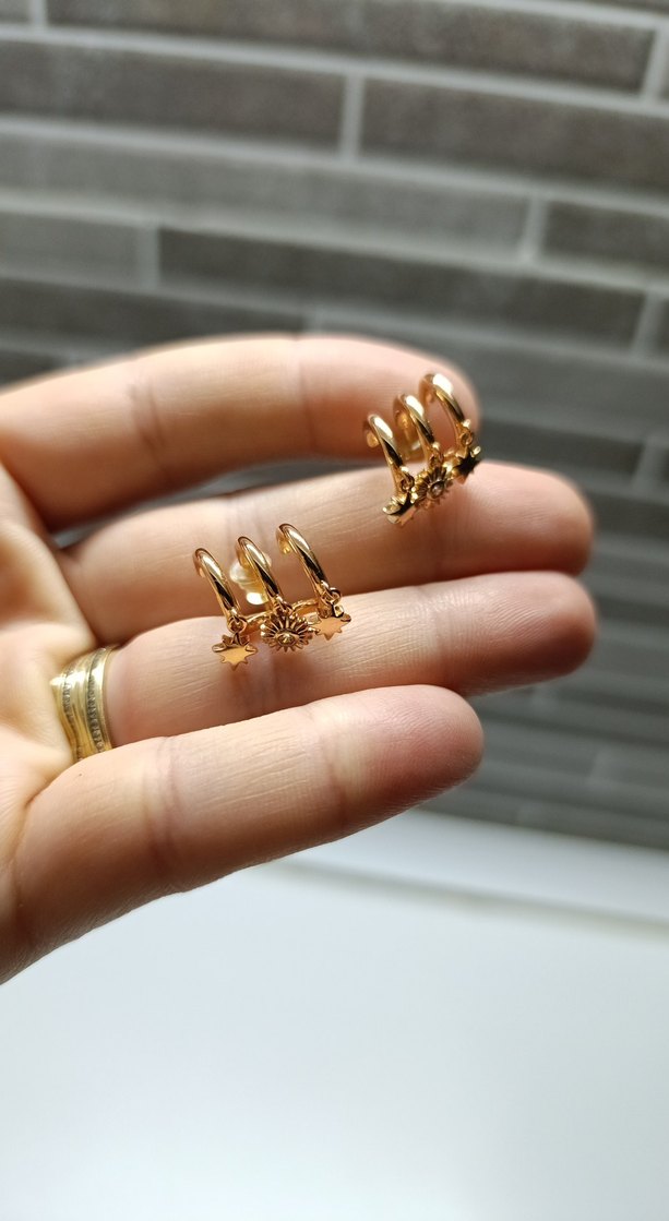 Parlak altın renkli, kemerli tasarımlı ve yılan desenli mini küpeler, günlük kullanıma uygun minimalist bohem tarzda. sadece bi kere denemek için kullanıldı