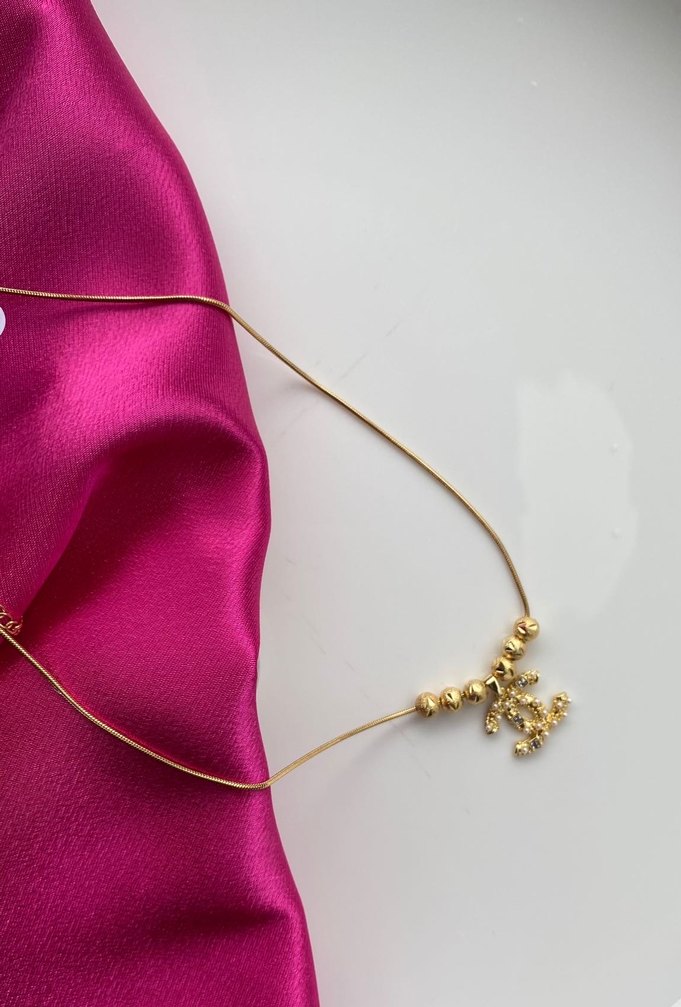 Altın Renkli Mini Nakışlı Kurdele Kolye çelik
