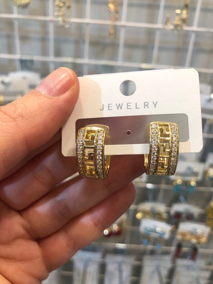 Altın renkli, kısa boylu, payet detaylı ve baskılı desenli küpeler, modern klasik ve ışıltılı bir tarz sunar. ✨