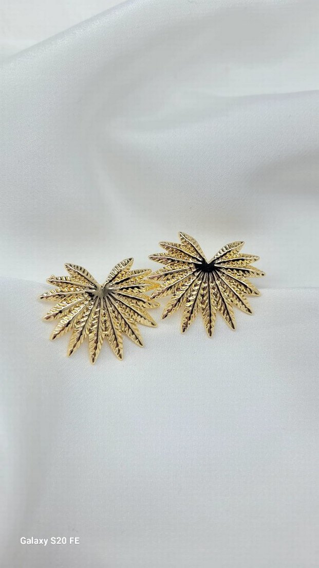 Altın renginde, pilili ve nakışlı detaylara sahip mini küpeler. Bohem tarzıyla düğünlerde klasik zarafeti tamamlar.